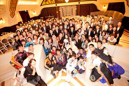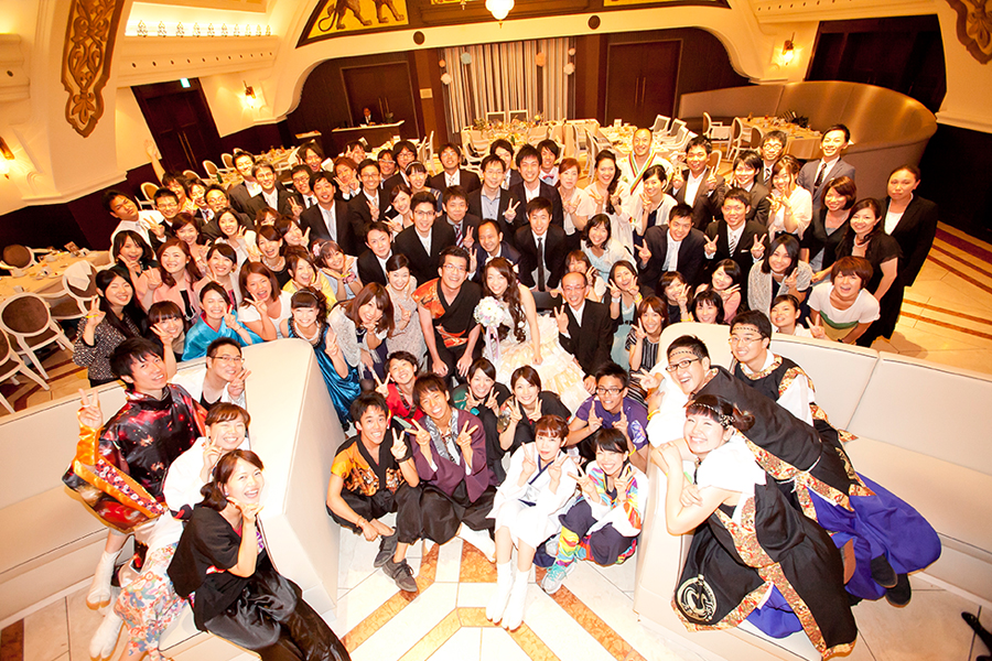 おふたりが出逢ったキッカケでもある「踊り」は、ウエディングパーティでも披露。『友達の友達はみんな友達。みんな大切な仲間!』 そんな記念に全員で集合写真を!お友達同志の輪がつながりましたね。
