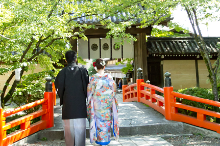 名物「あぶり餅」のお店が向かい合うのは、今宮神社東門側。元はこちらが正面だったとか…。9月台風の影響もなく快晴。お支度前に参拝。ご参列いただくみなさまもお参りをしてから記念撮影へ。