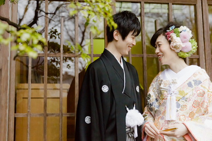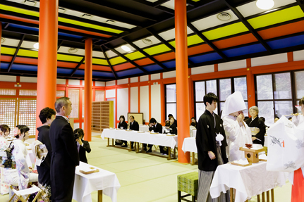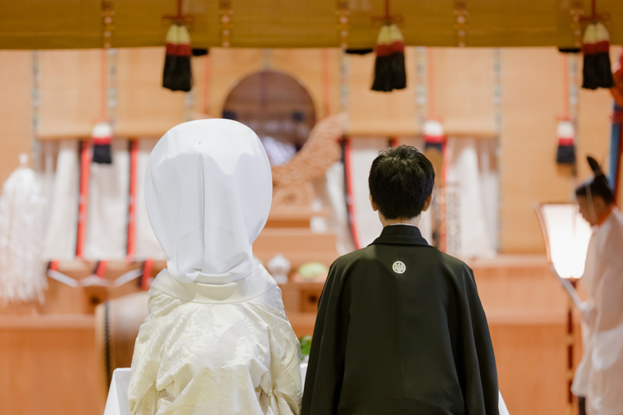 前日までに氏神さまへのお参り。当日は参列される方全員が参拝してからお控室へ。おふたりの心意気を全員が共有する。ほんの少しのことかもしれない。でも真摯に向き合ったからこそ生まれるあの日、あの瞬間の時空間はまぎれもなくおふたりが創り上げたものです。