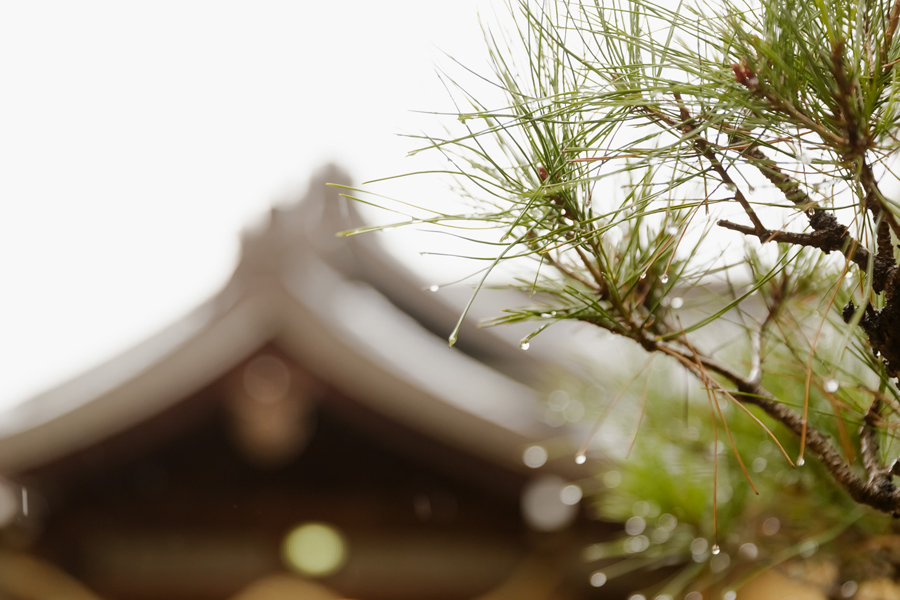当日までの準備期間に幾度となく参拝されたおふたり。Yoshikiさんは本殿の清掃奉仕も。おふたりの心は常にまっすぐで清らか。だから、風の神様はおふたりの気のバランスを整える「龍雨」をもたらし、樹々は輝き、鳥たちは唄う。