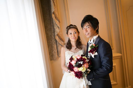 | COMMENT | 空・海・緑があるアウトドアウェディングがご希望だったおふたり。ご親族が大半を占める結婚式、ご両親のご意向…自ずと選択肢が見えてきました。会場を決める前に出会えたからこそ、会場・時期・予算など沢山の選択肢からベストをチョイスすることが出来ました。最高級リッツカールトン大阪でのホテルウェディングを選ばれました。