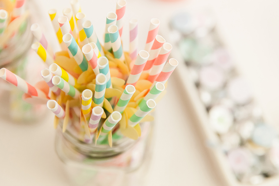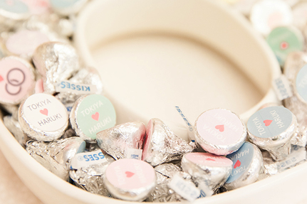 DIYアイテムも盛りだくさん。ハートが好きと新婦Harukiさんの希望を叶えるべく、ハートのクラフトパンチが大活躍!!! キャンディブッフェやカクテルパーティ用のハートスティック。ハートがついたペーパーストロー。おまけにキスチョコもデコレーション◎