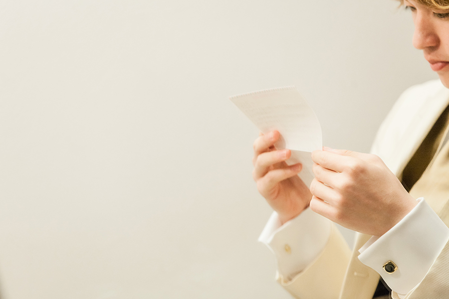 「お父さん お母さん ありがとう」。身近すぎて照れくさくて言えない言葉たち。誓いの言葉よりも先に伝えたいご両親への感謝の気持ち。きちんと伝えられるように人前式の式次第に組み込んで、ありったけの想いを込めて心の声を言霊に…。