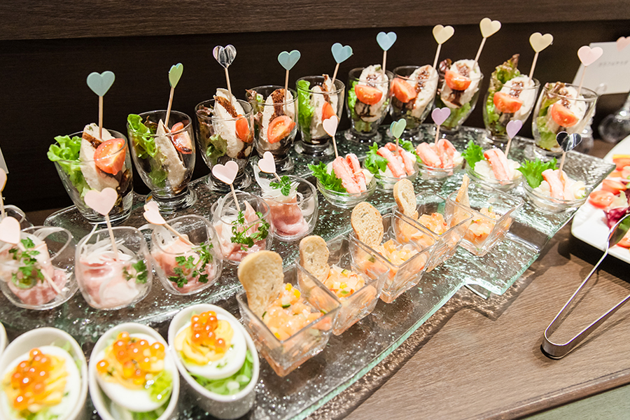 美味しいお食事とともに、写真撮影、お手紙を添えたご両親への花束贈呈、謝辞。ひとりひとりへのお手紙とともにプチギフトを贈呈。おふたりらしい優しさが詰まっています。