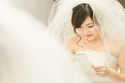 恋人としてのラストレター。お互いに内緒でラブレターを書いてきて~と出した宿題。手紙を読んだら泣いてしまうと新郎Tokiyaさん。めっちゃ楽しみにしてた~と新婦Harukiさん。めっちゃ幸せ~が伝わってくる表情です。