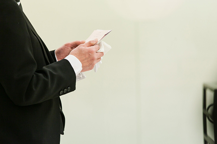 列席してくれている大切なお友達からは「誓い」の問いかけ。ラストは両家を代表して新郎Tokiyaさんのお父様から。『刻也 春喜 へ 楽しいことは2倍に つらいことは半分に 今の気持ちを忘れず 感謝の気持ちをもって 過ごすことを誓いますか?』