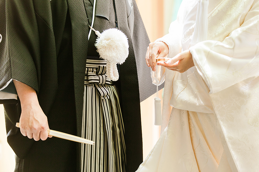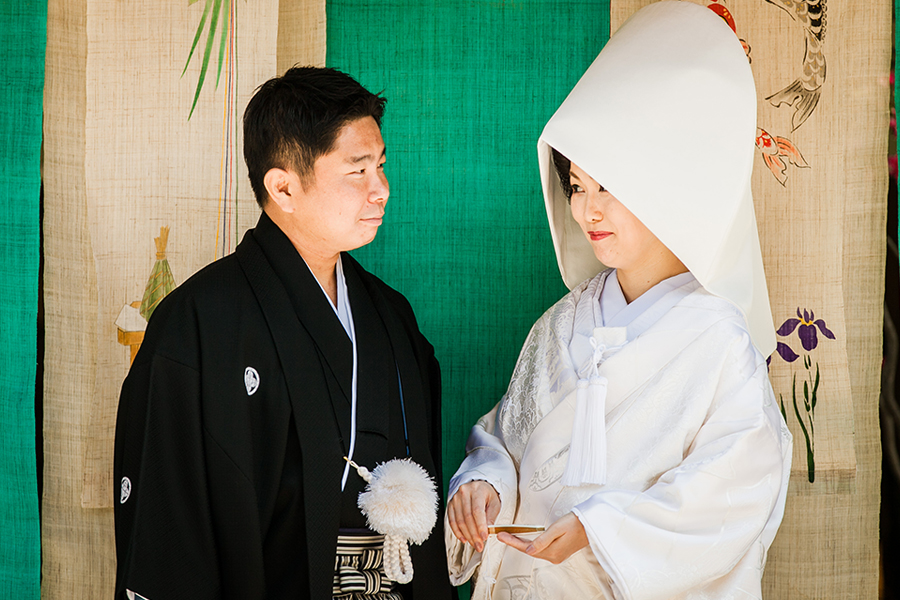 【挙式】三々九度では顔を見合わせて、誓詞奏上時には本殿を風が吹き抜けます。親族固めの柏手がピタッと揃った時には、鳥肌がたつほどの感動に包まれました。
