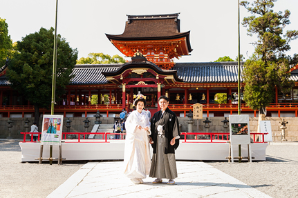 【記念撮影】夫婦としてご神縁を結び、新たな一歩を進み始める。変わらぬ場所での記念写真は、来年も再来年も、5年後も10年後も続きます。