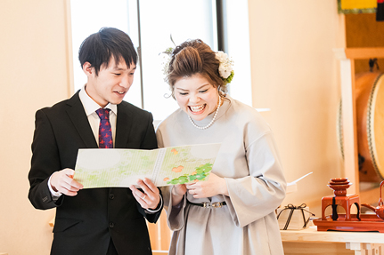 | COMMENT | 「入籍だけではなく結婚の儀式はきちんとしないとね。」ご両親さまのお子様を想うお心と新しく増える家族を想うお心からはじまった挙式準備。儀式場となる神殿では初めての挙式。和装をかわいく纏いたい花嫁さま。様々な調整の中で準備を進めた当日。花嫁さまの楽しい笑声と寄り添い微笑む花婿さま…お手伝いさせていただいている私たちまでを笑顔にさせてくれる明るいおふたりを、お天気もポカポカ快晴でお祝い。冬の寒さを感じることなく、ご家族の温かな心を感じる1日となりました。 ご縁をいただいたご家族は2016.11.23撮影をお手伝いさせていただいた花嫁さまの弟さまのご婚儀。撮影から2ヶ月足らずですが、すでに懐かしく感じるご夫妻、ご家族さまとご婚儀で再会できる喜び。プランナー冥利につきます。ご家族の大切なご婚儀をお手伝いできたこと、また両日とも過分なるお心遣いにも感謝です。 |
