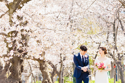 | COMMENT | 2017.4.22神前式と披露宴。 本番は白無垢とオーダードレスを纏う。 前撮では、花嫁さまのお友達が同じく結婚式の前撮で纏った記念のドレスを引き継いで。花嫁さま手作りのブーケとブートニア。美容師として活躍される花嫁さまのお姉さまがヘアメイクを担当。 撮影した写真たちは、プロフィールブックやウェルカムボード、オープニングムービーなど当日のアイテムに活用してみなさまにお披露目です。 撮影時期が限られた贅沢な桜フォト。春らしい陽気も味方してとても和やかな撮影になりました! 2017.4.22神前式と披露宴のギャラリーはこちら> |