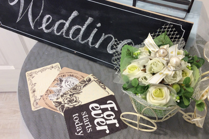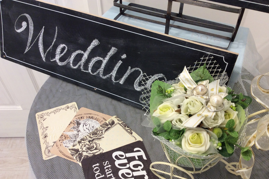 ブーケ・ブートニア、ヘッドパーツ、リングピローはMasakoさんの手作り。お友達のフローリストさんのサポートをいただきながら、本格的なウエディングアイテムが完成。